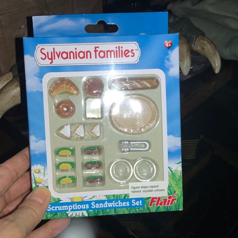 Sødt spisesæt for 2. Der er både kopper, glas, tallerkner, bestik, mad og meget mere. I alt over 40 dele. Sylvanian Familes er søde, små dyrefamilier og alt hvad de omgiver sig med i deres fantastiske verden. Produktet stammer helt tilbage fra ca. 1972. Tidligere var de kendt som Skovens Dyr i Danmark, men har nu også skiftet navn til det internationale Sylvanian Families. Ordet Sylvan betyder da også "fra skoven". Bemærk at der ikke medfølger dyr.