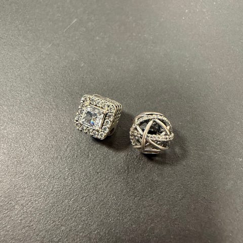 Charms, sølv, Pandora, Fine glimmer charms fra Pandora i sølv og lyse sten.