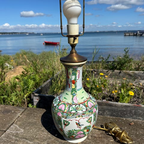 Lampe, Kinesisk Bordlampe med krakele glasur. Signeret.
