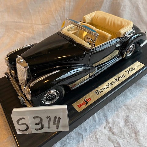 Pæn bil, de tre figur som skal ha siddet i bilen er pillet ud, så der er huller/revner hvor de skulle ha siddet.