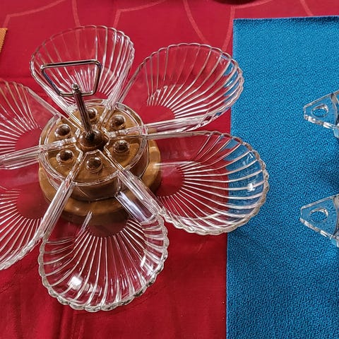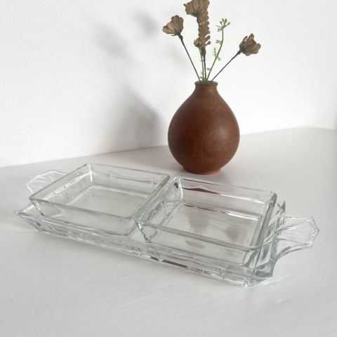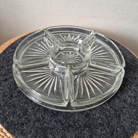Porcelæn, Cabarefad, Flot cabarefad / skål med 4 rum med hver sin farve og guldkanter i bunden. Har aldrig været brugt.
