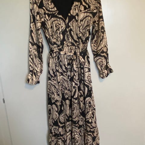 Sort m. guld og bordeaux , 100% Viscose, Næsten som ny, Str M/L. Længde ca 88 cm
