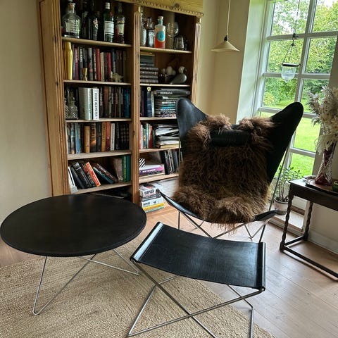 Flagermus stol , OX design, Flagermus stol fremstår i rigtig god stand. Farven er cognac.