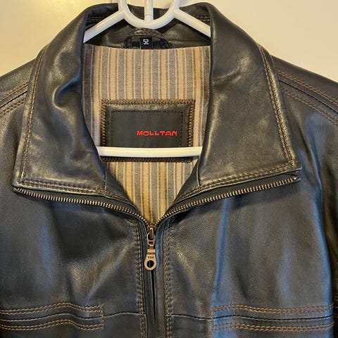 Læderjakke, str. M, Molltan, Brun, Læder, God men brugt, Str. 48. Kort jakke.