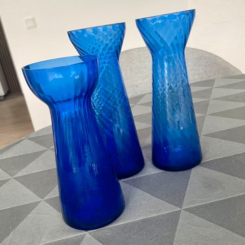 Hyacint glas, 3 koboltblå Hyacintglas til efterår og jul.