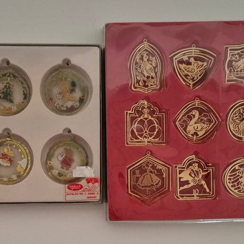 Æske med 6 metal juleophæng, Ca 6 cm i diameter pr ophæng.