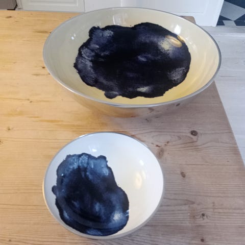 Bordskånere til glas, i hvid plastik. Brugt, men meget velholdte, man ser ingen misfarvninger/ pletter fra drikkevarer.