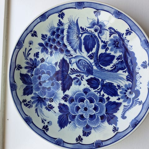 Keramik, Platte, Gammel håndmalet platte med blomstermotiv