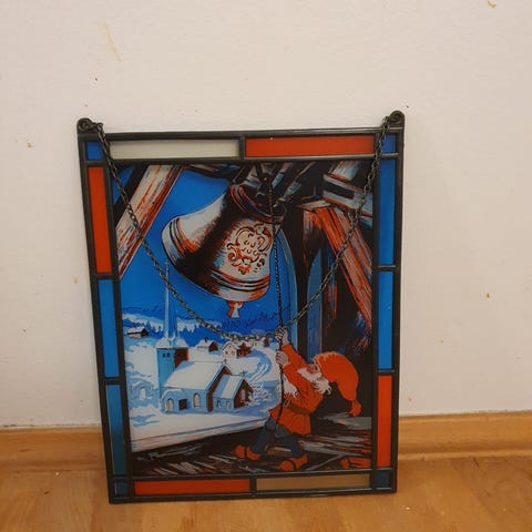 16 cm højt 10 cm bredt vindue i træ med nisse