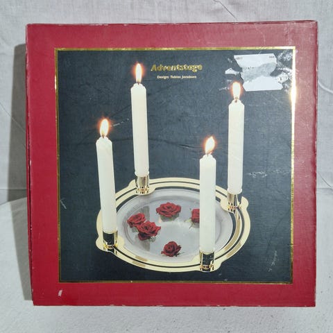 Adventstage af Tobias Jacobsen, Blankpoleret adventstage med klar glasskål i midten.