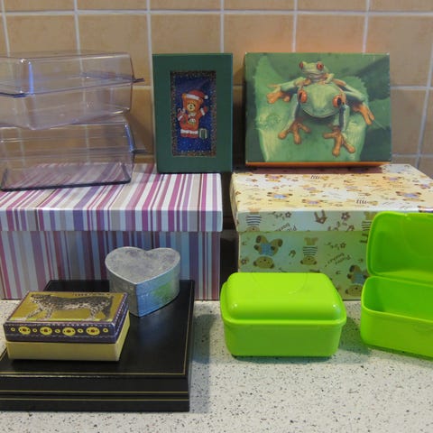 Måler : Længde 15,5 cm, bredde 12,5 cm og højde med låg 6,50cm.