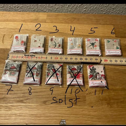 Dukkehus-møbler, Juletid / julesok, Flotte små julesokker med forskellige mønster til at hænge op evt ved pejsen så nisse kan komme med gaver sælges pris 5 kr pr stk køber betaler fragt