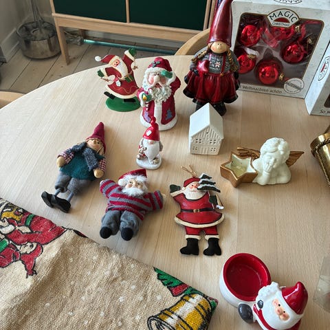 Julepynt, nisse, grydelapper, lanterne, træ engel