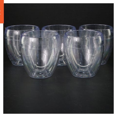 Glas med sort l plastik låg.