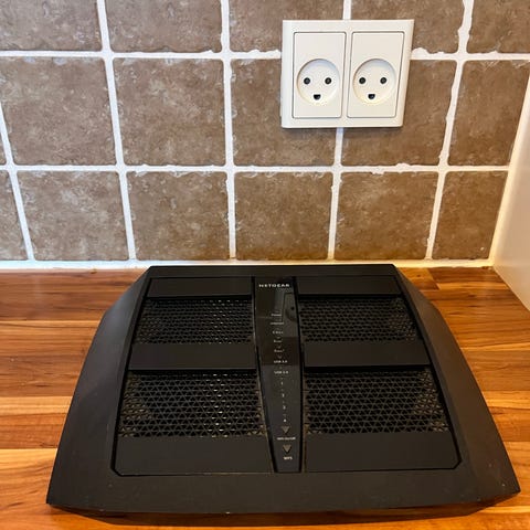 Router, wireless, Netgear R8500 Nighthawk X8 AC5300 , Perfekt, Netgear R8500 Nighthawk X8 AC5300 Smart WiFi Router er i stand til at levere en trådløs forbindelse til hele hjemmet, der ikke kan matches. Takket være 5,3 Gbps tri-band og Quad Steam-teknologi kan du levere 4 streams med Full HD-indhold til 4 forskellige enheder på samme tid. Du kan også streame 4K-indhold uden tab af detaljer. Spil intense online-spil, mens familien ser online-film i stuen. Med Dual aggregeret Gigabit LAN-port er det nemt at forbinde netværkslagringsenheder til at støtte dit trådløse media-netværk.