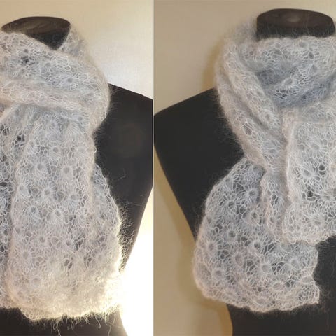 Tørklæde, Vinter tørklæde i flotte farver, Merichy, str. 100 cmx 60, Rød og blå mm, Viskose og silke, Ubrugt, Flot med to forskellige sider som matcher godt, med roser og små blomster, markant, behagelig at have på