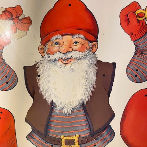 Han har en nissedragt på, men bæltet bliver holdt sammen bagpå med en nål, så det skal nok lige limes. Han er mærket POBRA i nakken.