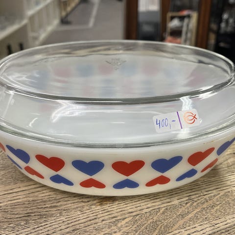 Fad, Pyrex, Flot gult fad med guld på. Kan tåle både ovn airfryer og fryser