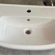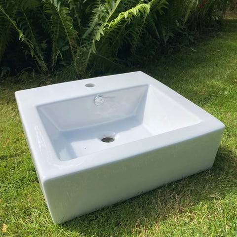 Ny håndvask, en prototype derfor denne udformning. Måler 52 x 33 x 18 cm. Lavet af acovi composit.