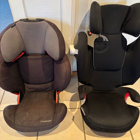 Autostol, op til 36 kg , Kiddy Discovery Pro, 2 stk. Fine autostole 15-36 kg. Lidt misfarvning på siderne ved stolens ‘øreflipper’. Fra ikke-ryger hjem.