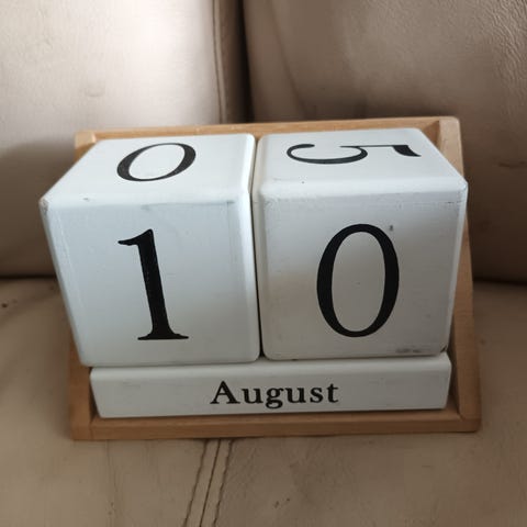 Kalender uendelig, Træ blokke, God til at lære datoer og holde styr på dem. Kan bruges uendeligt, da den har dage og måneder uafhængigt af årstal. Målene fremgår af de sidste fotos.