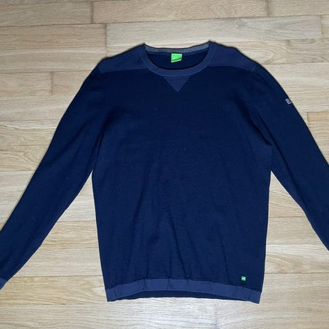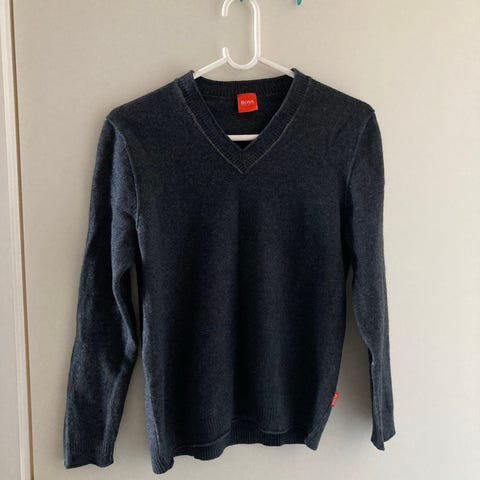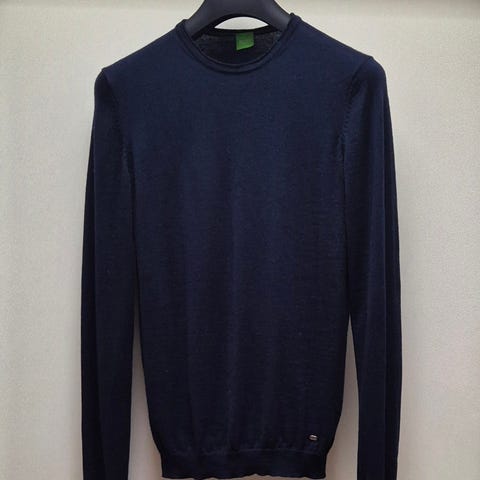 Tynd uldstrik fra Hugo Boss, mørkelilla. Lækker blød kvalitet med 100% jomfru-uld (virgin wool).