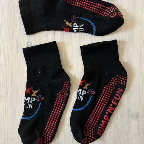 Jump yard strømper til at anvende i diverse trampolinparker. Størrelsen hedder S. Vil tro de kan passe til 4-6år.