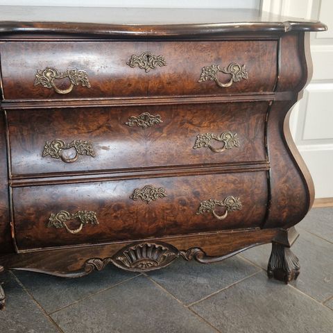 Kommode, valnød, Super elegant Chiffonier / Kommode med 5 store skuffer. I midten en special skuffe med mindre skuffer og run og øverst en lav skuffe.