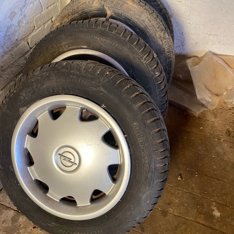 Vinterdæk og fælge… hulafstand 75 mm... 2 skal skiftes, 2 fejler ikke noget..har siddet på Opel Corsa..