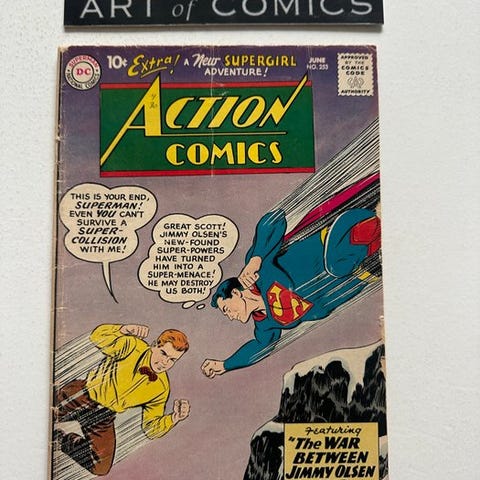 Supergirl's first appearance in Action Comics #252 (20 years after Superman's own debut) was an immediate smash with the readers. Copies were quickly being passed along, borrowed, and read heavily, That would result in a surprisingly low number of surviving copies of this major DC event, even by the usual standards of tough-to-find DC books from the '50s. Action #252 continues to remain among the top-three toughest DC Silver Age keys to track down.