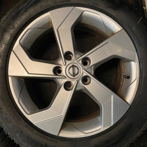 NY PRIS! Alufælge, 17", Originale, 215 / 65 / R17, krydsmål 5 x 114,3, ET 40, vinterdæk, Bridgestone, 60% mønster, fælge med dæk, Originale Nissan Qashqai alufælge - model 2021 og fremad sælges.