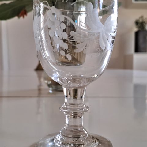 Glas , 140 år gl., Et meget fint 1800-tals baluster-vinglas fra ca. 1870.