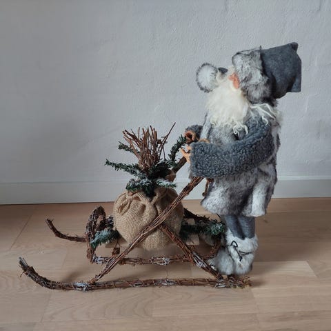 Tysk julemand med cello., Super flot julemand der spiller på cello. Julemanden er fra Tyskland fremstillet i tyskporcelænsmasse og er fra 1990. Er meget velholdt uden afslag eller lignende. Har naturlig patina efter brug af fyrfadslys. Højde : ca. 21 cm. Julemanden har en medhjælper der spiller på harmonika ( se anden annonce ) kan evt sendes på købers regning.
