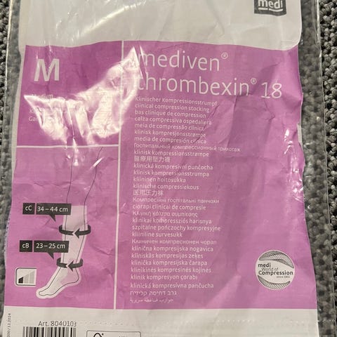 Sygepleje, Compressana Sensitiv AD, knæstrømper, Kompressionsstrømper er i beige. Størrelse er small/normal strømper.