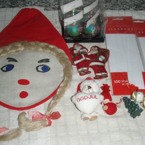 15 stk små julemænd, som hænger på en snor, man kan hænge på juletræet