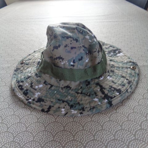 Flot Jungle hat i navy blå, med forskellige funktioner i at sætte den på hoved