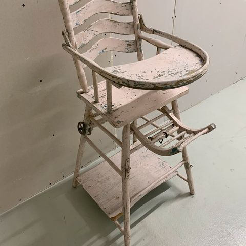 Højstol, Retro / Vintage , Gammel Charmerende Barnesæde i Træ ,