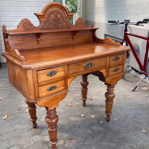 Skrive bord, Har, stået samme sted i 50 År. Grøn læder på overfladen. Står i Randers