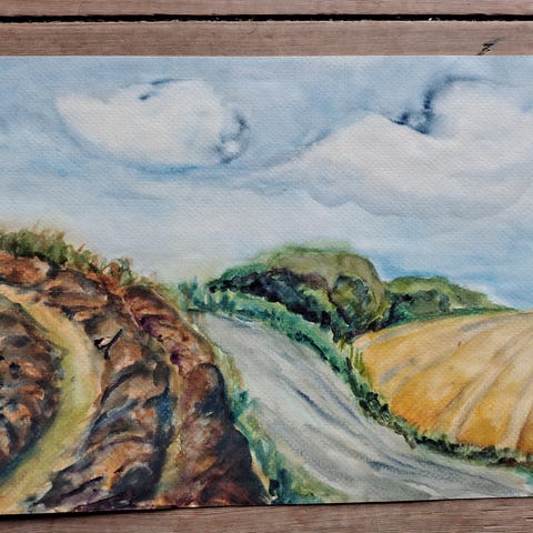 Akvarel, Se foto, motiv: Landskab