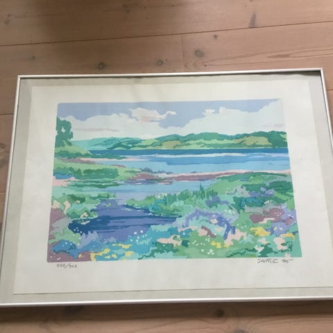 Akvarel, Se foto, motiv: Landskab, stil: Naturalistisk, b: 40 h: 50, Akvarel købt hos kunsthandler i 80 erne, prof indrammet.