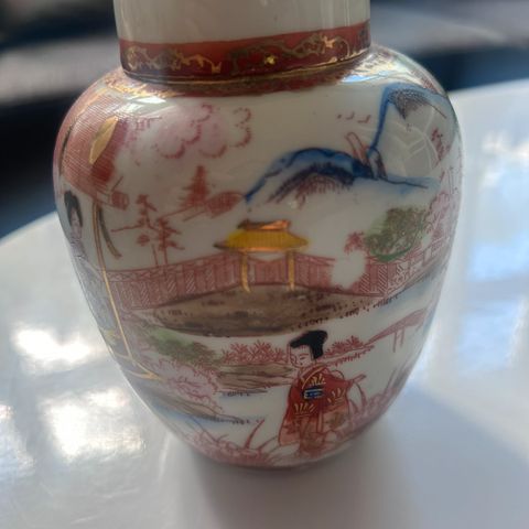 Porcelæn, Krukke, Arabia, Fin lille krukke med rødt motiv af byhuse og hjerter. I fin stand.