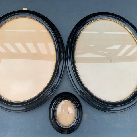 Rammer, Ovale, Sælger 2 stk sorte ovale plastik rammer fra 1970-1980 erne. Rammerne er ca 22.3 cm × ca 17 cm.