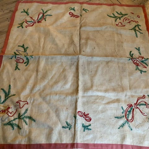 Ældre vintage håndbroderet juletræstæppe julepynt