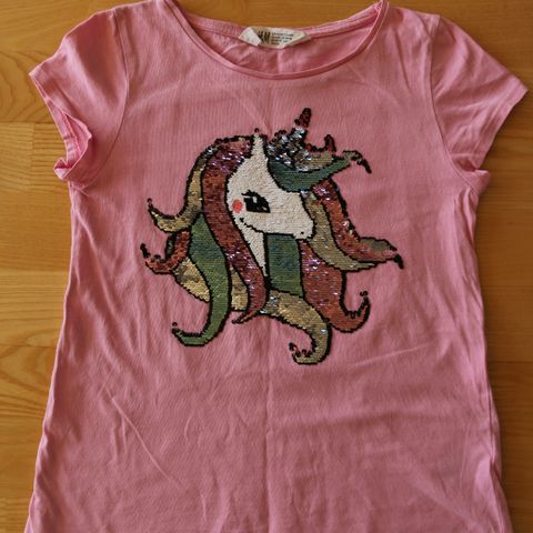 T-shirt, T-Shirt med pailetter, H&M, str. 134, Størrelsen hedder 134/140