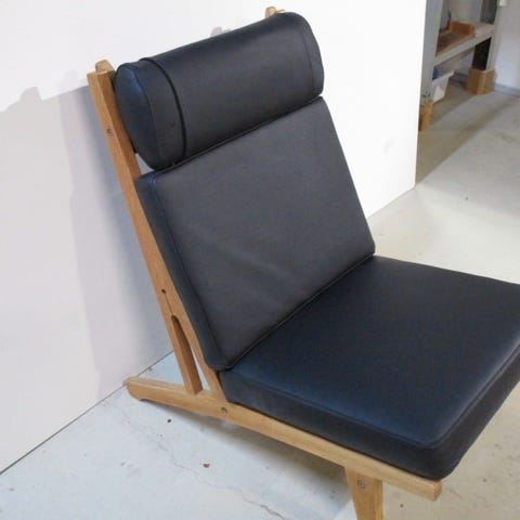 Wegner, GE-375, GE-375, Hans J. Wegner (1914 - 2007). Lænestol, model GE-375 med sort stel, løs sæde- og rygpude betrukket med læder. H. 70 cm., B. 64 cm.
