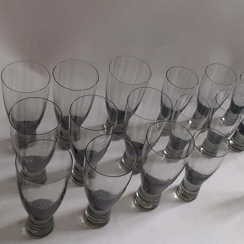 Jeg har også 4 portvin H 117 mm ‘hvidt’ glas med slebne streger med 4 cirkler på hver, som kan medfølge for 100 kr.