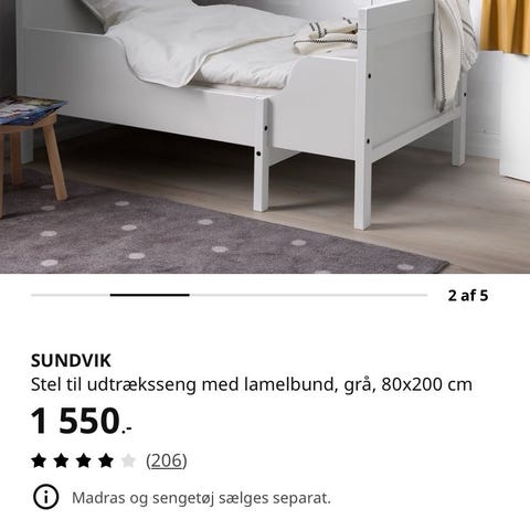 Juniorseng, Udtræksseng, b: 80 l: 200, Sundvik udtræksseng med lamelbund fra IKEA.