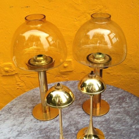 Et meget smukt, tidsløst og dekorativt sæt olielamper, udført i solid messing og glas