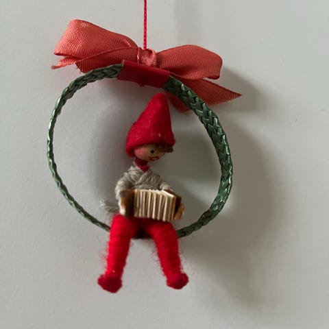 Utroligt velbevaret nisse uro, Har bare ligget fint indpakket, med hver nissegynge i sin pose, i sin kasse og ventet på at komme til at julehygge igen. Den fedeste originale uro med chenille og vat nisser, ren Retro fra 50’erne. Se billeder