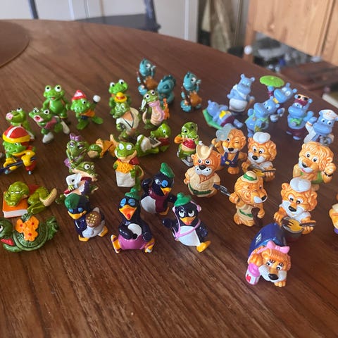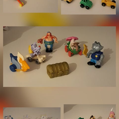Samlefigurer, En kasse med små figurer., Sælger alle disse figurer hvor de fleste er fra Kinder æg fra år 1980-2000. Nogle er også fra gaver eller købt i butikker. Et samleobjekt. Det har ikke været muligt at tage foto af hvert enkel. De sælges som beset og kan evt sendes til pakkeshop på købers regning.